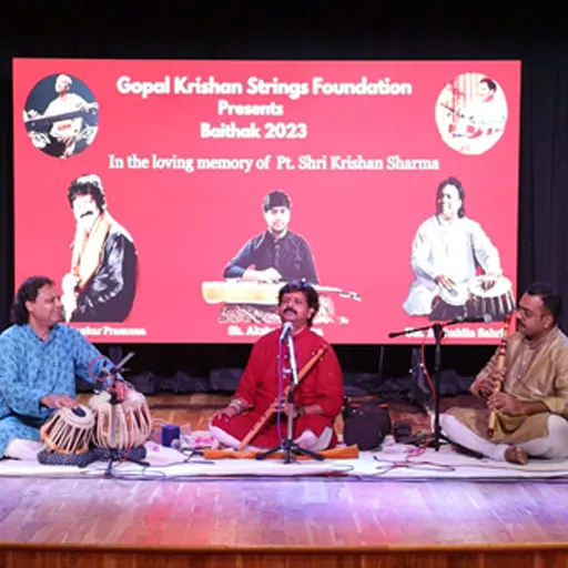 We at GKSF are committed to promote Classical Art Forms of India. We provide a platform to the upcoming artists and conduct concerts of renowned artists. We work selflessly in order to promote various “Traditional Art Forms of India”. Gopal Krishan Strings Foundation is a Section 8 company which has a very comprehensive MOA. Our Motto is to promote Indian Classical Music, Western Music, Light Music, Drama and various other forms of Fine Arts by means of organizing Cultural Programs and Workshops at various levels (Including Schools and Universities) in order to create awareness towards Rich Heritage and Culture of India.